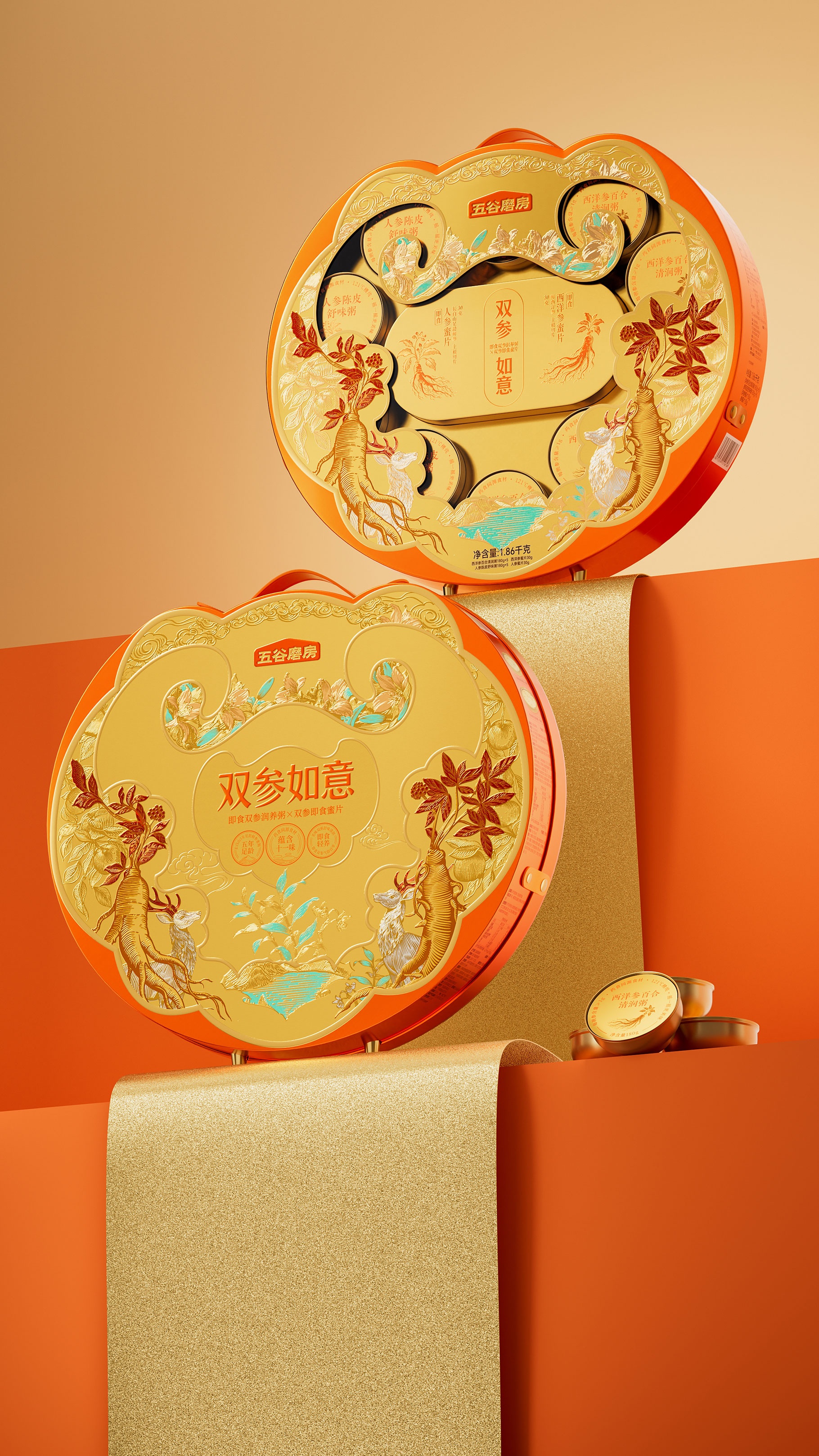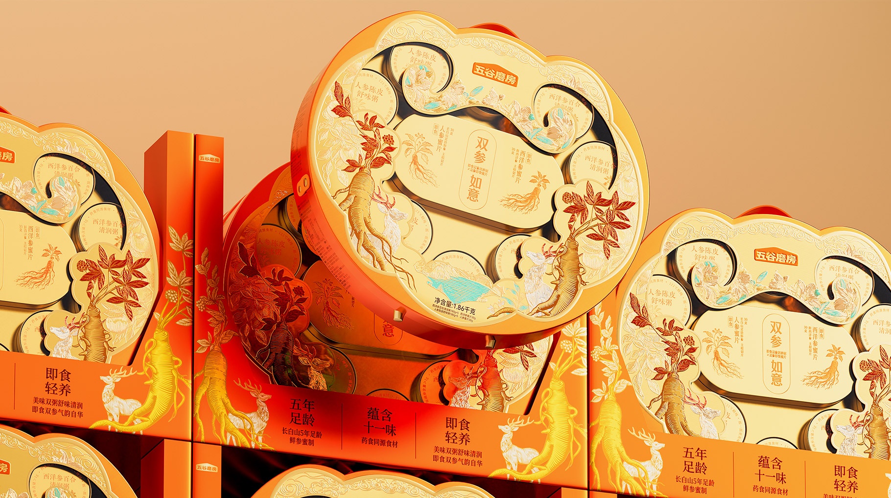?五谷磨房,雙參如意禮盒設(shè)計(jì),山姆新年禮盒設(shè)計(jì)
