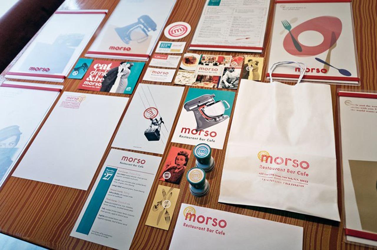 就像家庭式的菜肴一樣,我們想要設計一個讓人感到舒適和放松的空間。菜單簡短而充滿活力,可以保持對話流暢。我們用大膽,明亮的海報填充墻壁,并飾有厚厚的厚臉皮,如“嘴里滿是沉默的金色”和“吃,喝,做Morso。”這是一種食客所喜愛的氛圍,適合廚師Pino豐富多彩的氛圍。個性完美。