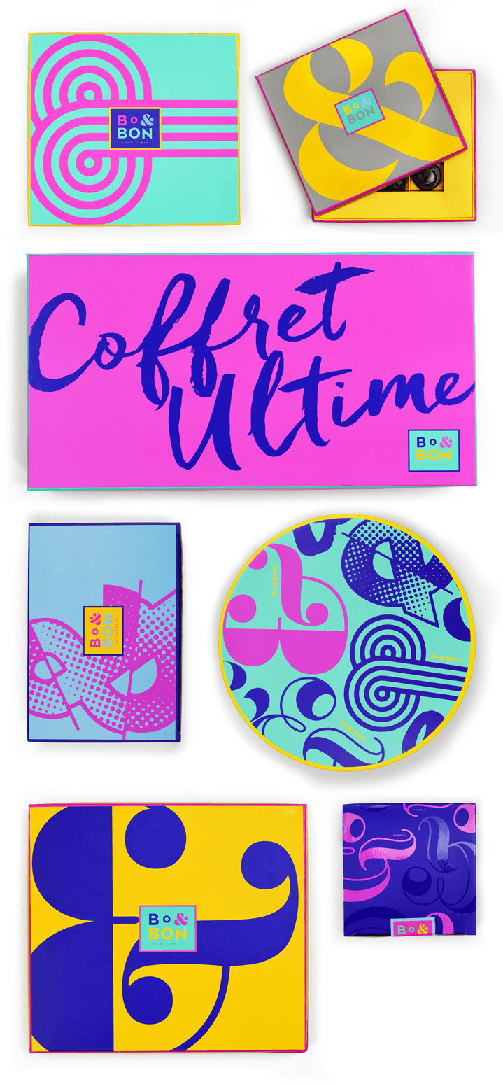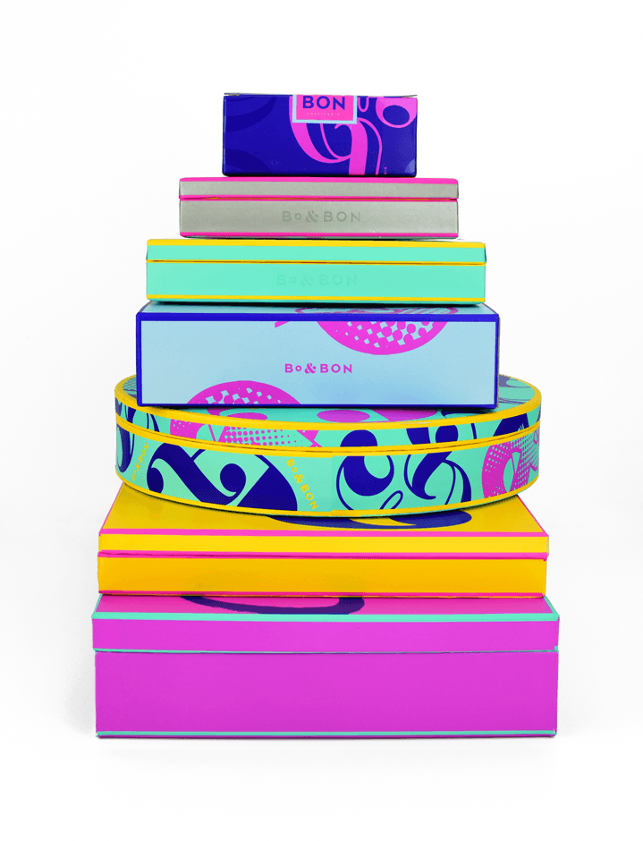 Bo&Bon Confiserie是一家由一對年輕的法國夫婦創(chuàng)立的精品巧克力和糖果店,位于新澤西州。他們制作正宗的法國馬卡龍,松露,糖果,手工切制的棉花糖,巧克力味,牛軋?zhí)牵姹菏称返鹊取K麄冊趦蓚€零售地點(新澤西州萊克伍德和紐約布魯克林)以及通過其網(wǎng)站bo-bon.com進(jìn)行銷售。他們需要刷新品牌形象以恢復(fù)品牌形象,同時還要解決實際的包裝設(shè)計挑戰(zhàn)。我們?yōu)榍煽肆μ峁┝肆钊苏駣^和充滿活力的品牌,但品牌重塑基本上涵蓋了其各種糖果產(chǎn)品的整個系列。挑戰(zhàn)的一部分是找到一種包裝所有產(chǎn)品的方法,而庫存中沒有太多不同的盒子。我們與他們合作,根據(jù)SRP目標(biāo)確定產(chǎn)品,并創(chuàng)建了模塊化的托盤系統(tǒng)和盒子尺寸,以便可以在馬卡龍和巧克力糖果之間互換托盤。包裝設(shè)計的視覺識別采用充滿活力的多色調(diào)色板的形式,該調(diào)色板既多樣又嚴(yán)格。限量版模式被用于某些包裝格式,例如松露盒和分類禮品盒,以幫助保持生產(chǎn)線有趣和意想不到的樂趣。我們不僅為他們提供了醒目的視覺效果,而且還提供了具有高度特定性和技術(shù)性的包裝圖和結(jié)構(gòu)設(shè)計細(xì)節(jié),使他們能夠在較短的時間內(nèi)(不到2個月)在海外生產(chǎn)其產(chǎn)品線,幾乎沒有錯誤。最終結(jié)果是無法忽視的視覺識別,并幫助他們擴(kuò)展了產(chǎn)品線,而又不過度投資包裝材料。
