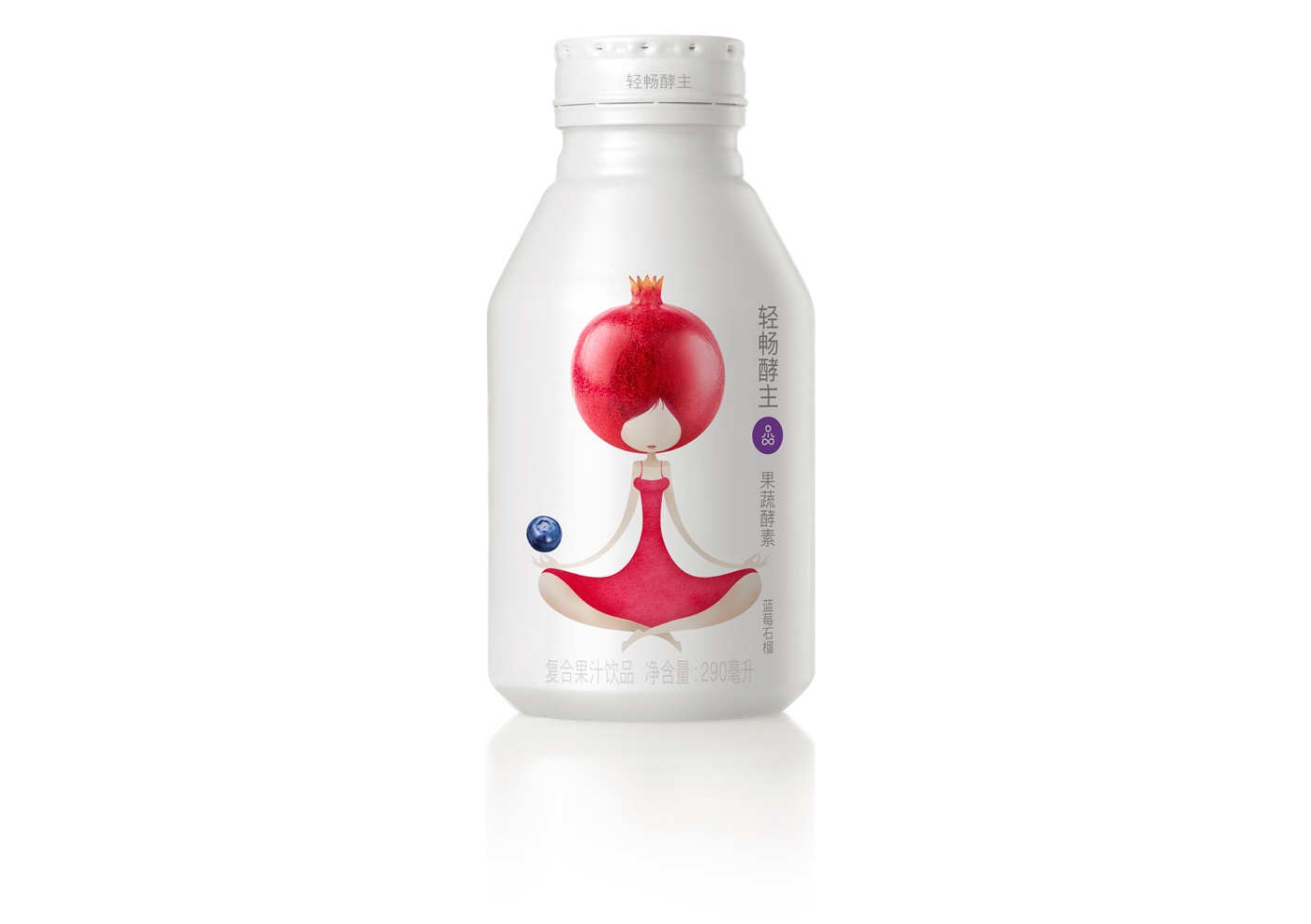 設(shè)計(jì):我們的客戶將產(chǎn)品指定為“可飲用瑜伽”。我們始終忠實(shí)于該描述,以尋找能夠最流暢地傳達(dá)信息的插圖。我們以瑜伽為靈感的角色是人類水果嬉戲的混合體,僅限于優(yōu)美的曲線線條和自然色彩,因此可以自然,樸實(shí)的方式喚起品位,寧靜和身心健康。兩種水果-植物的組合(諾麗和接骨木花/玫瑰,石榴和藍(lán)莓)在每個(gè)角色的特征中都很明顯,而包裝的其余部分則保持白色,并平衡所有相關(guān)信息的字體。這是一個(gè)包裝,著重于不同設(shè)計(jì)元素的有效和流暢的協(xié)作,以建議您放心,保持身體平衡以及天真,年輕的心情。